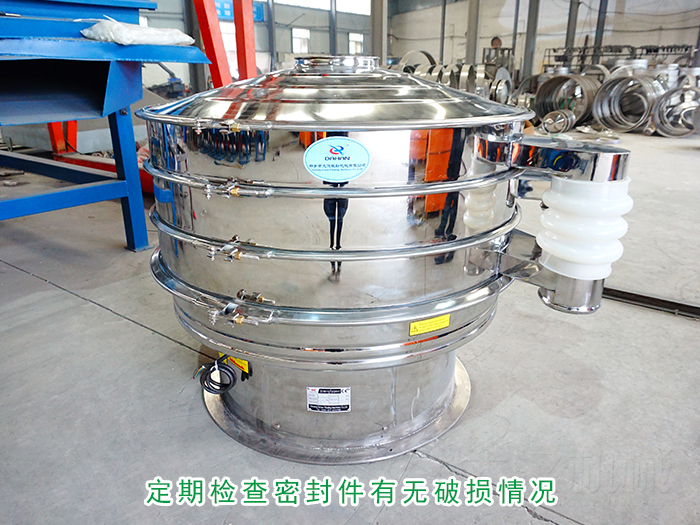 不銹鋼振動(dòng)篩在篩分過(guò)程中由于篩機(jī)上產(chǎn)生的強(qiáng)烈振動(dòng)力導(dǎo)致物料在篩分過(guò)程中粉塵溢散,所以在篩框與篩網(wǎng)之間的密封件一定要嚴(yán)格密封且要定期檢查有無(wú)破損才能實(shí)現(xiàn)無(wú)塵篩分。