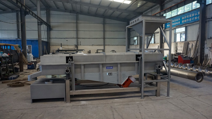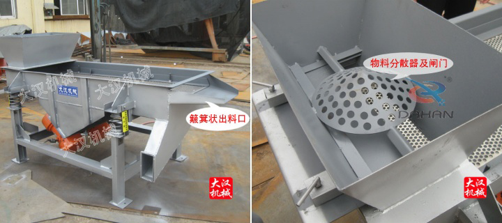 大漢機(jī)械廠家根據(jù)客戶要求針對(duì)鋸末行業(yè)特殊設(shè)計(jì)了一款加裝傘形分料器的直線振動(dòng)篩,解決篩網(wǎng)堵塞問題,鋸末和石頭完全從出料口中排出來,提高了篩分產(chǎn)量。