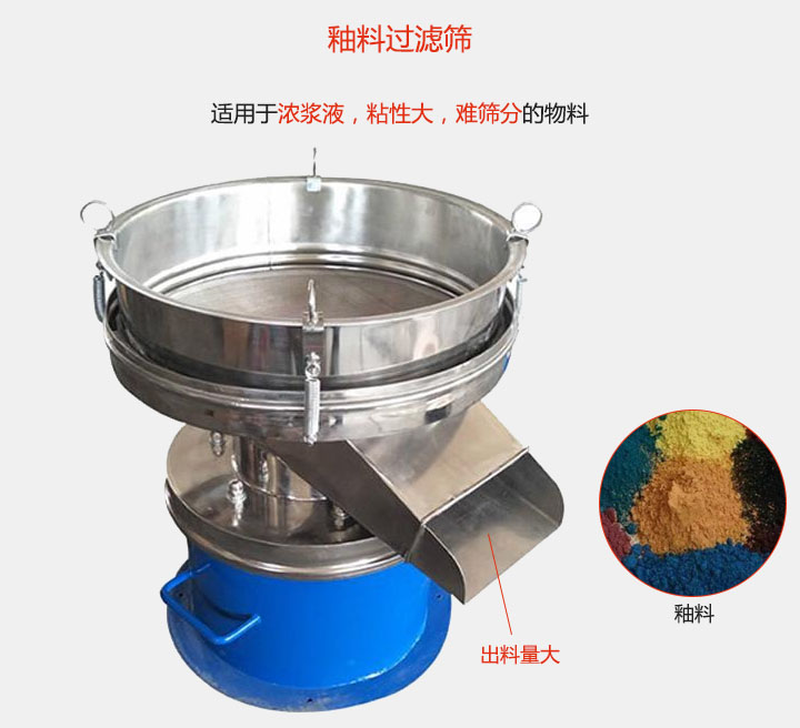 釉料過濾篩適用于:食品,陶瓷,醫(yī)藥,化工,油漆,冶金等行業(yè)廣泛應(yīng)用。