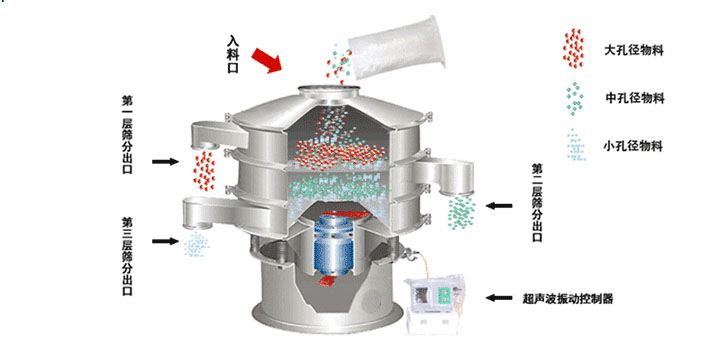 超聲波篩分機(jī)使用智能振動(dòng)超聲控制器,改變了單一頻率帶來(lái)不適應(yīng)性和不可調(diào)性,振動(dòng)篩振頻每秒1460次,超聲波每秒3.6萬(wàn)次,在振動(dòng)超聲控制器的控制下,實(shí)現(xiàn)物料的篩分目的。